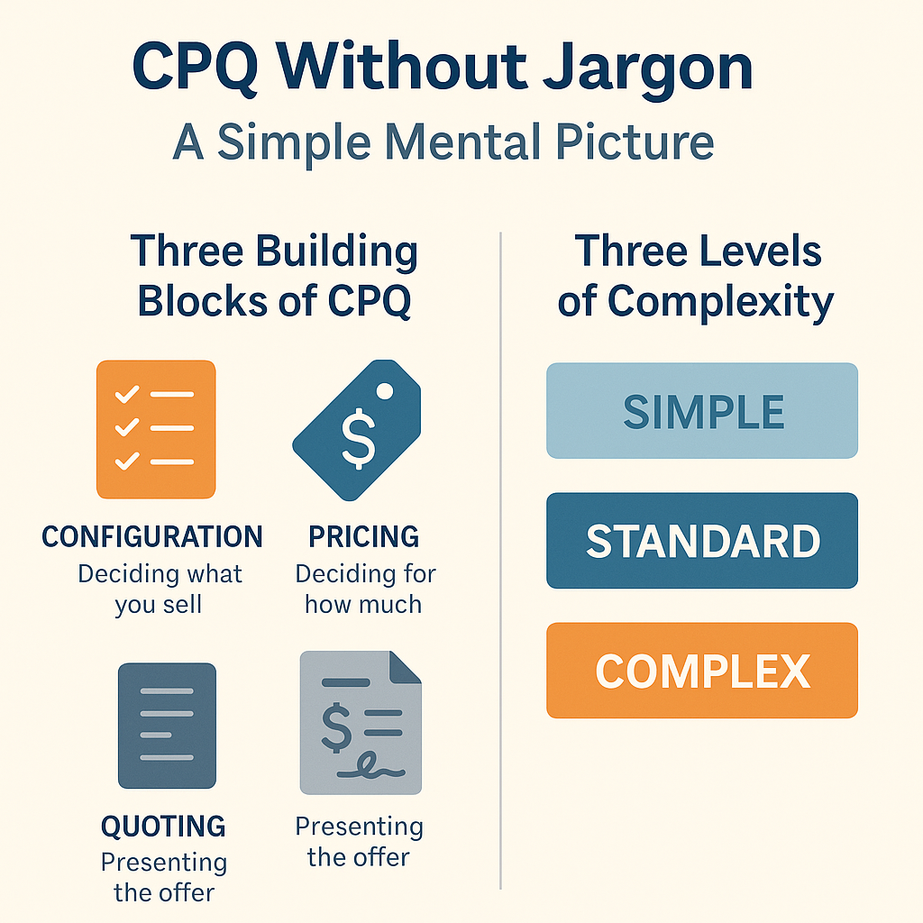 At the same time, vendors talk about “advanced configuration,” “AI pricing,” or “enterprise quoting.” Internal teams ask whether you need “complex rules” or “dynamic approvals.” None of that is very helpful if you’re a business leader trying to answer a much simpler question: